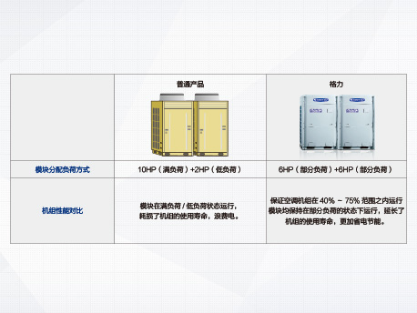 空調在40%~75%負荷運行時,耗電量低,GMV5能智能分配各模塊輸出能力,運行負荷超過75%