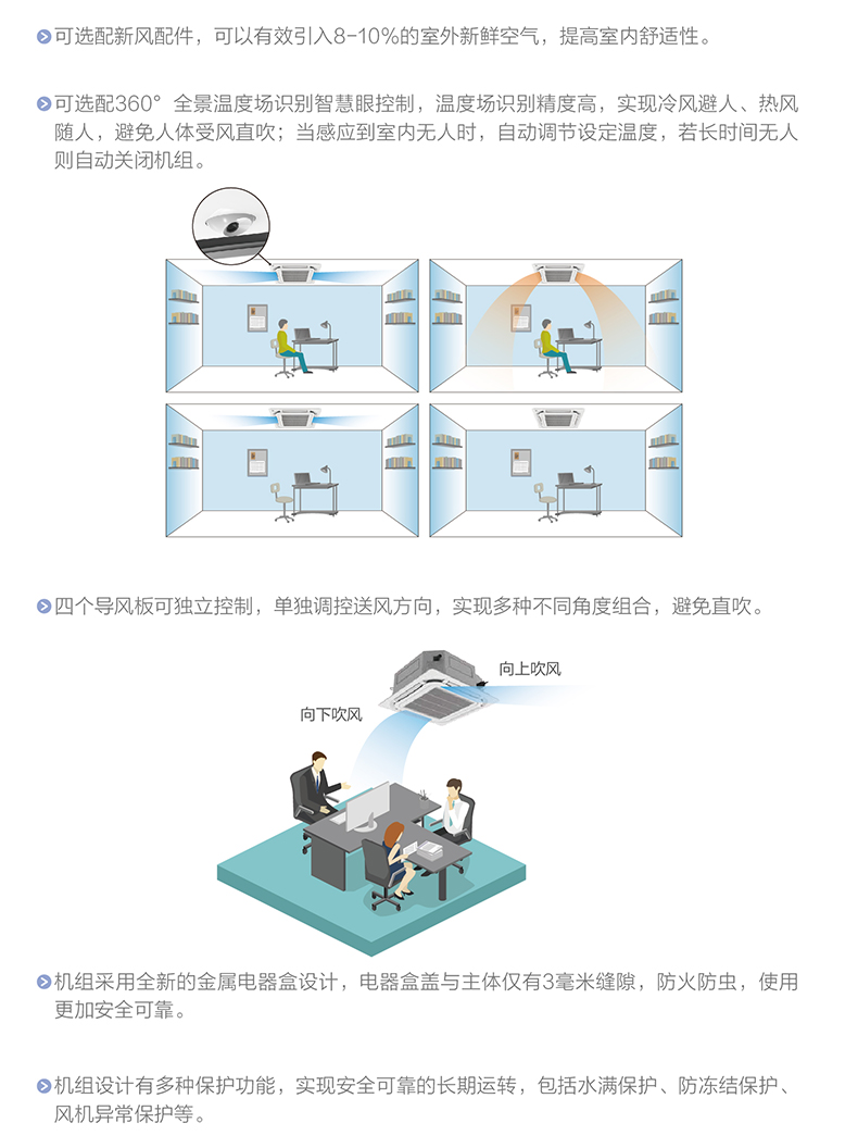 格力 SDT 系列環繞出風天井式室內機,室內機采取中間回風,八面送風,風量強勁,可均勻送風到室內各處。該機組廣泛應用于酒店、辦公大樓、商場、公寓、別墅、家庭等多種場所,為客戶提供舒適宜人的生活、辦公環境。