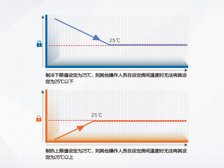 可通過線控器設置制冷下限值和制熱上限值,防止公共場所隨意調節空調造成能源浪費。