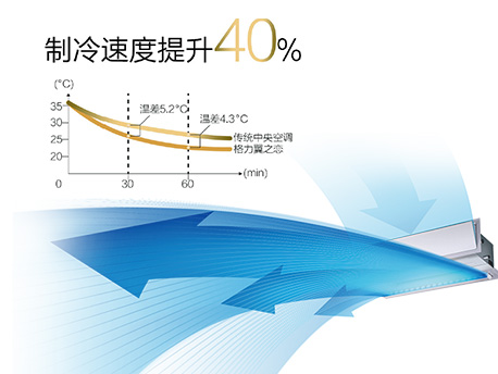 沐浴式制冷,冷氣自然沉降,避免“空調(diào)病”,制冷速度提升40%。